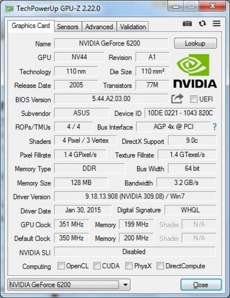 Из того, что было в наличии, в паре заработали только GeForce 7200GS и 6200. Путём перебора выяснилось, что ни Radeon 9800, ни X800, ни 9600XT, ни GeForce 3, ни Quadro 4 не заработали вообще. В случае с Quadro 4 вообще до запуска дело не дошло. Так что использование видеокарт AGP здесь очень и очень ограничено.