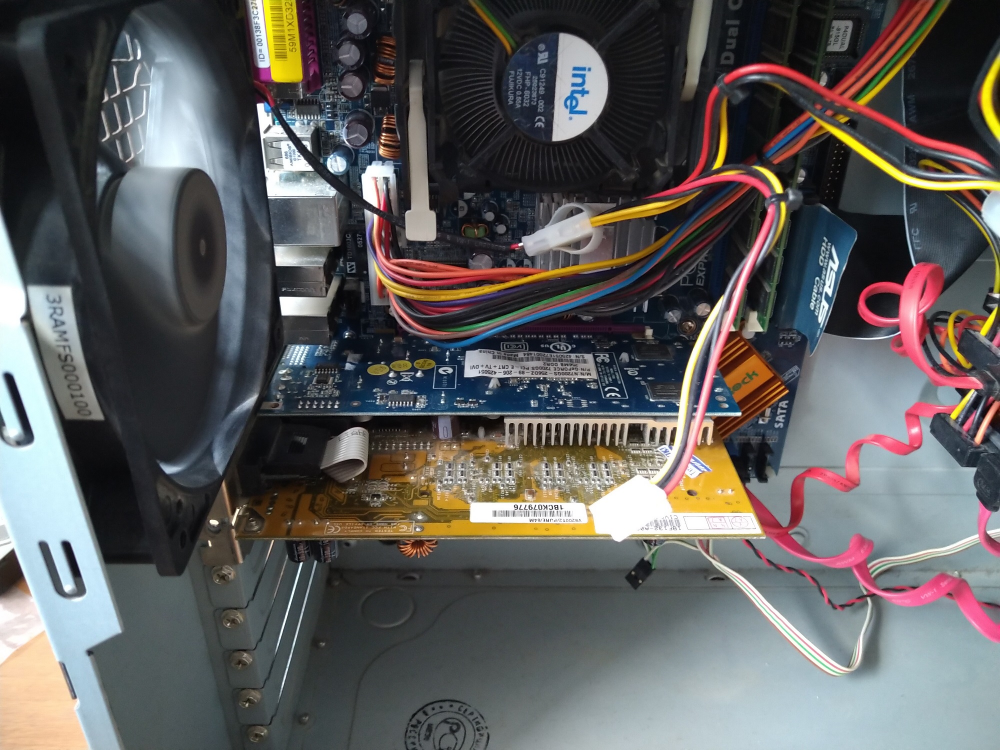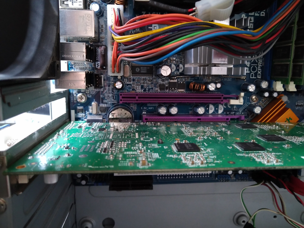 По отдельности работали все PCI-E карты. Я пробовал GeForce 7200GS, 9800GT и GTX 470, и все они запустились нормально. Из-за расположения слотов не удастся попробовать сочетание даже 9800GT с какой-нибудь AGP-картой, поэтому придётся довольствоваться 7200GS.