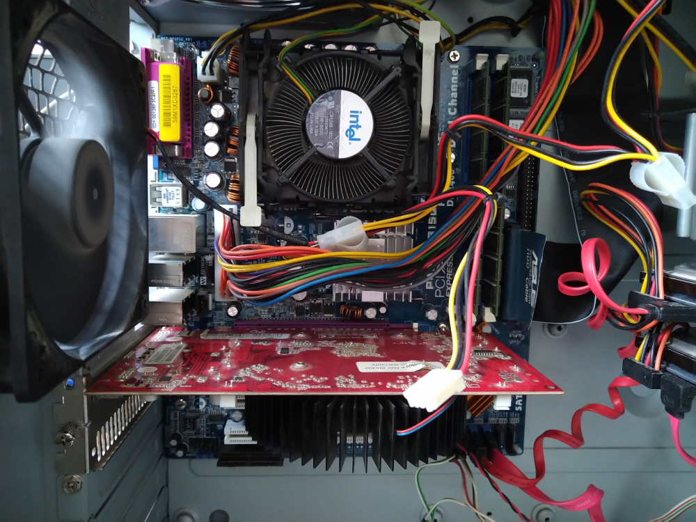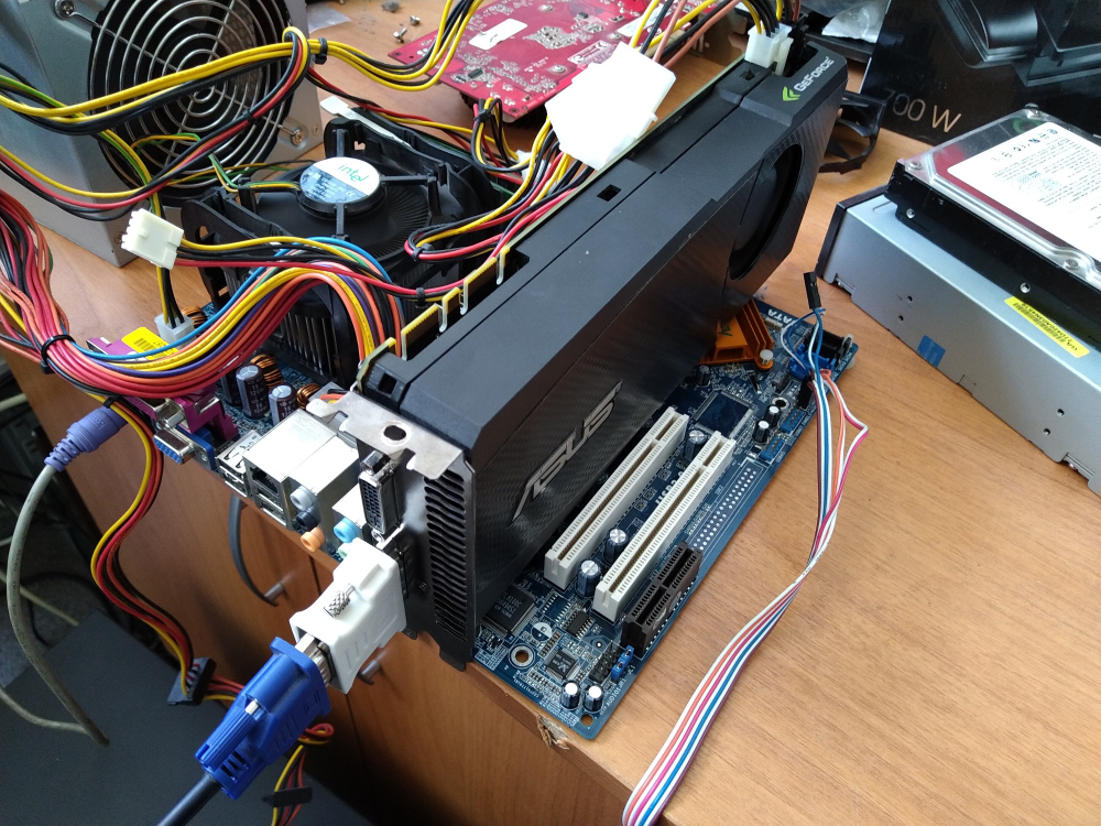 Для начала устанавливаем просто 9800GT для проверки, что всё работает. Да, никаких проблем с конкретно PCI-E здесь нет.