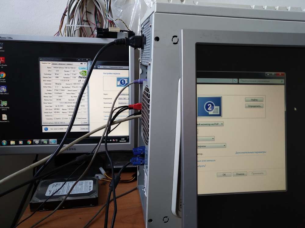 Только вот подключить к ним два монитора сразу не удалось. Нормально работала только 7200, с отображением на второй видеокарте были какие-то проблемы.