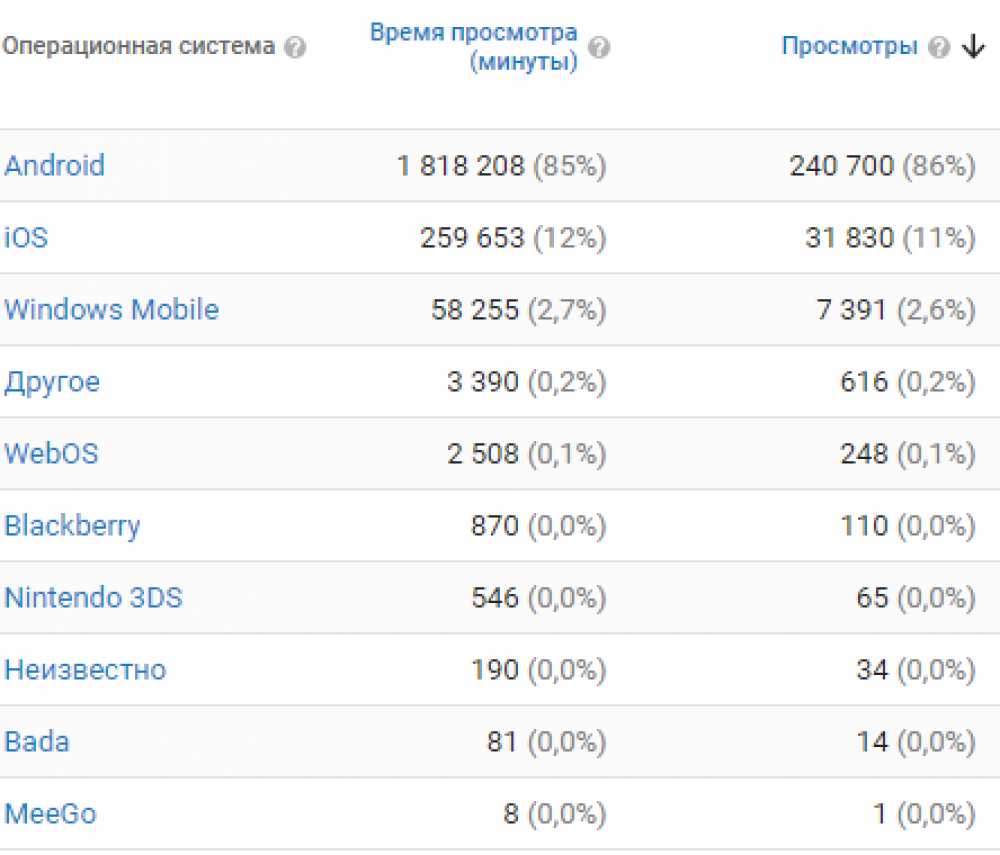 Тут Android делает всех как стоячих, разница с iPhone-ами в 7 раз. Впрочем, оставшаяся часть набора операционок тоже удивляет наличием некоторой экзотики.