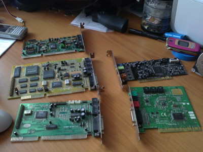 Возможно, что одна совсем старая звуковуха, которая может не врубиться, ибо найдена на помойке.