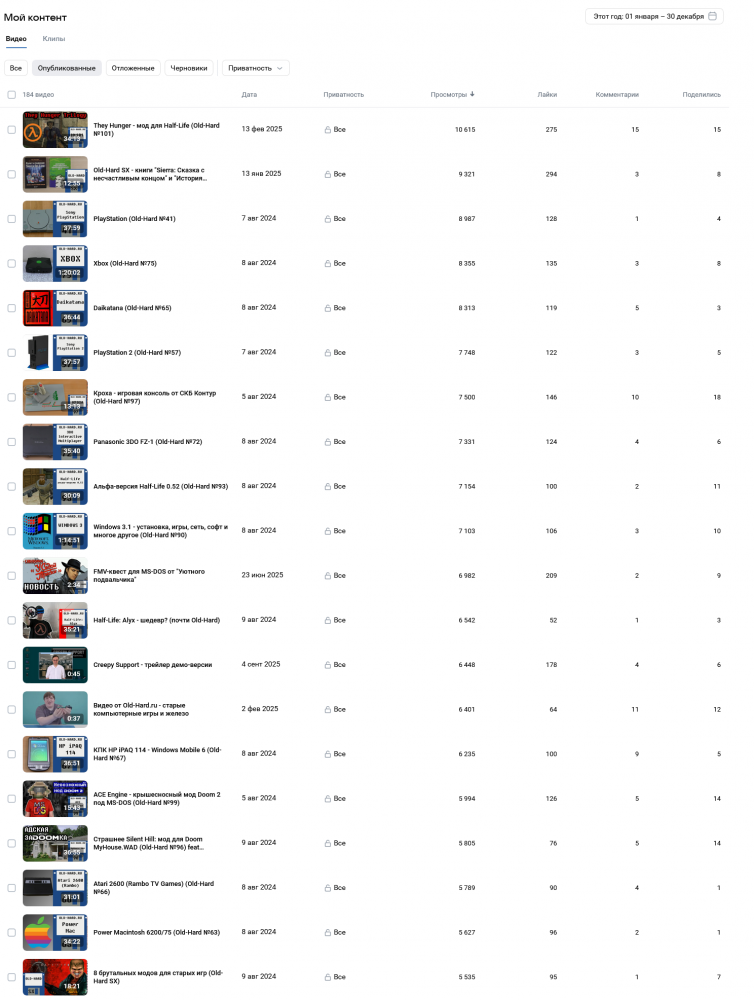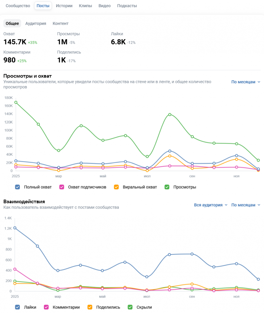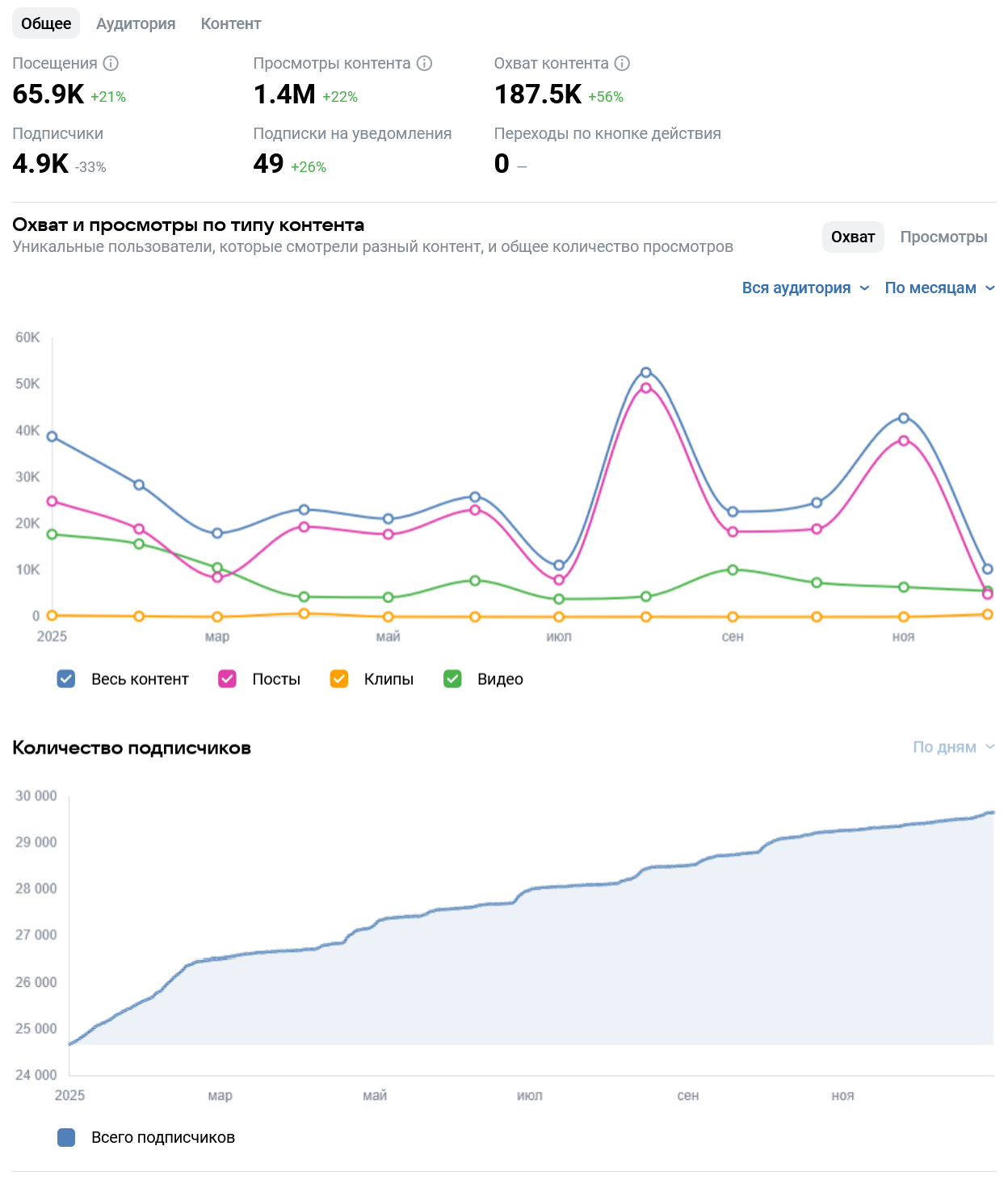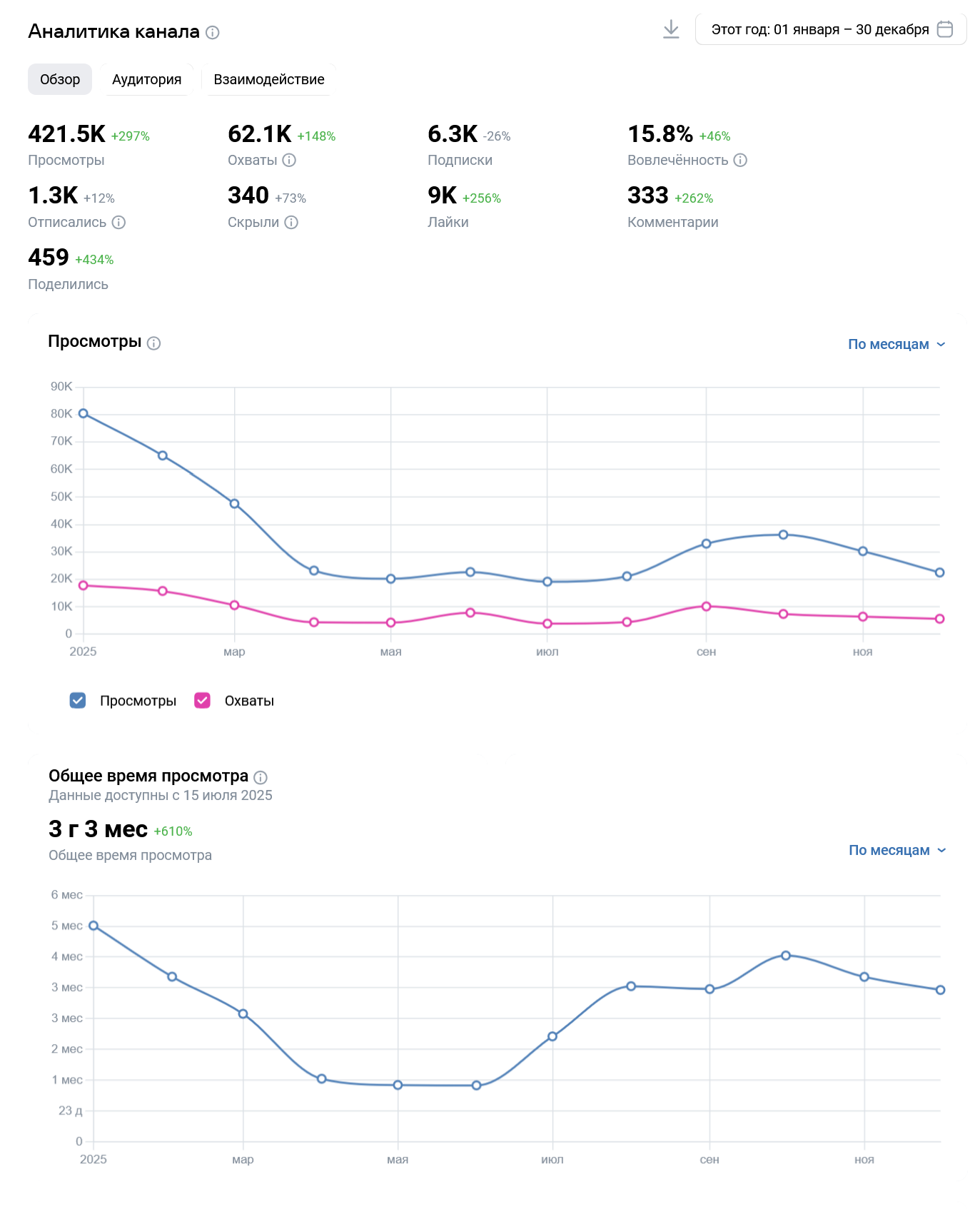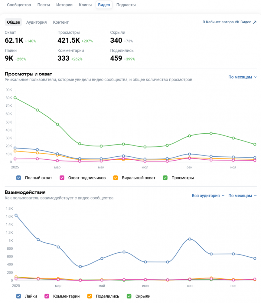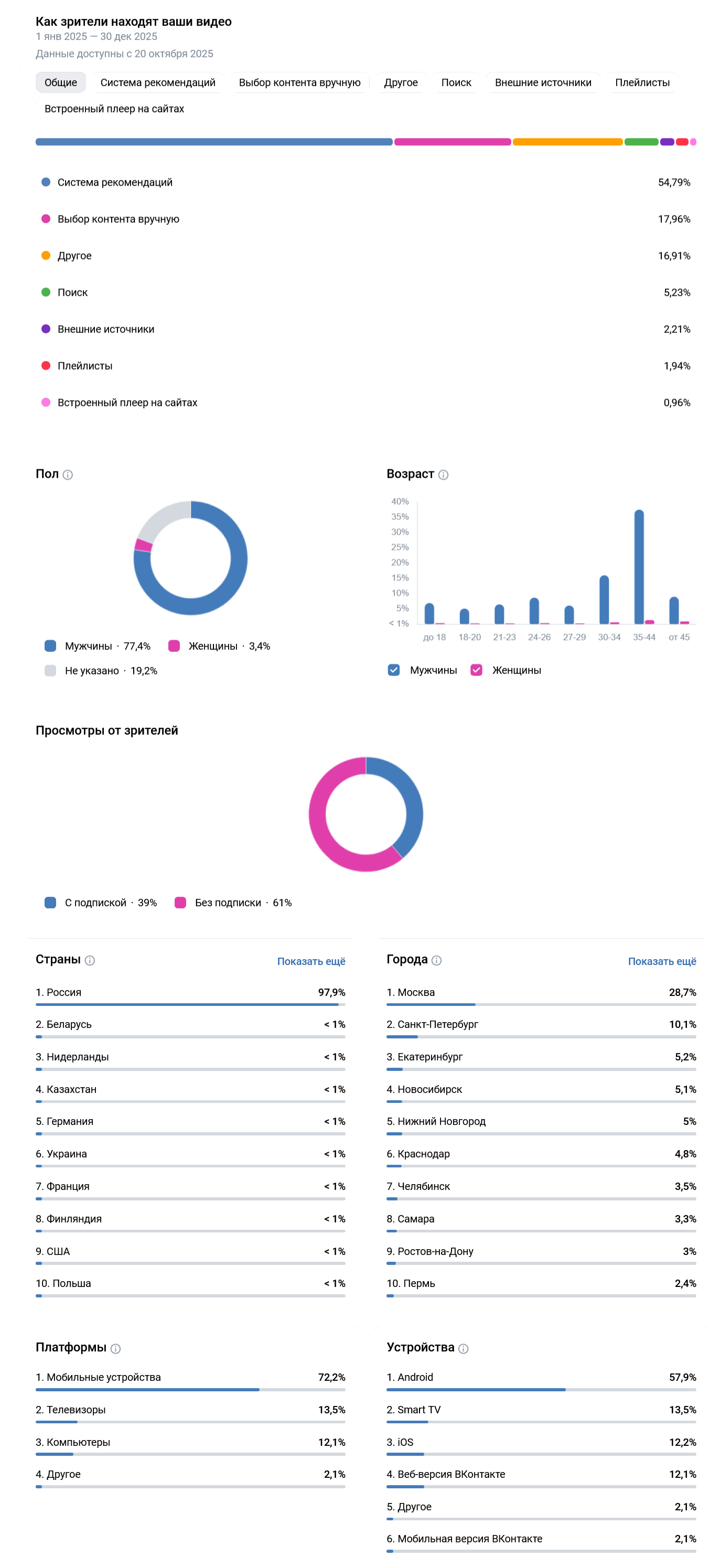 Куча циферок по группу Вконтакте и ВКвидео за 2025 год